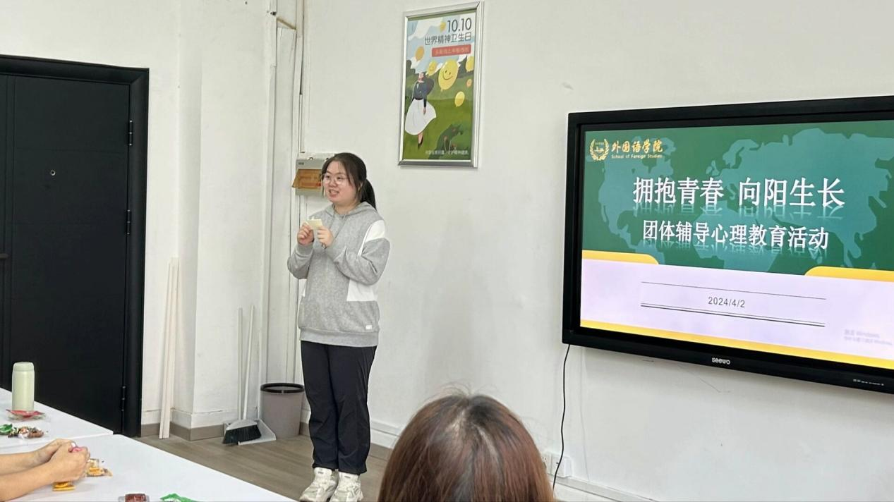 为帮助同学们缓解焦虑,更加阳光自信,威廉体育外国语学院朋辈心理互助部于2024年4月2日下午在三教团辅室开展了以“拥抱青春,向阳生长”为主题的团体辅导心理教育活动,旨在帮助同学更加全面的认识自己,发现自己独一无二的特点并缓解其心理压力过大而产生的焦虑感。