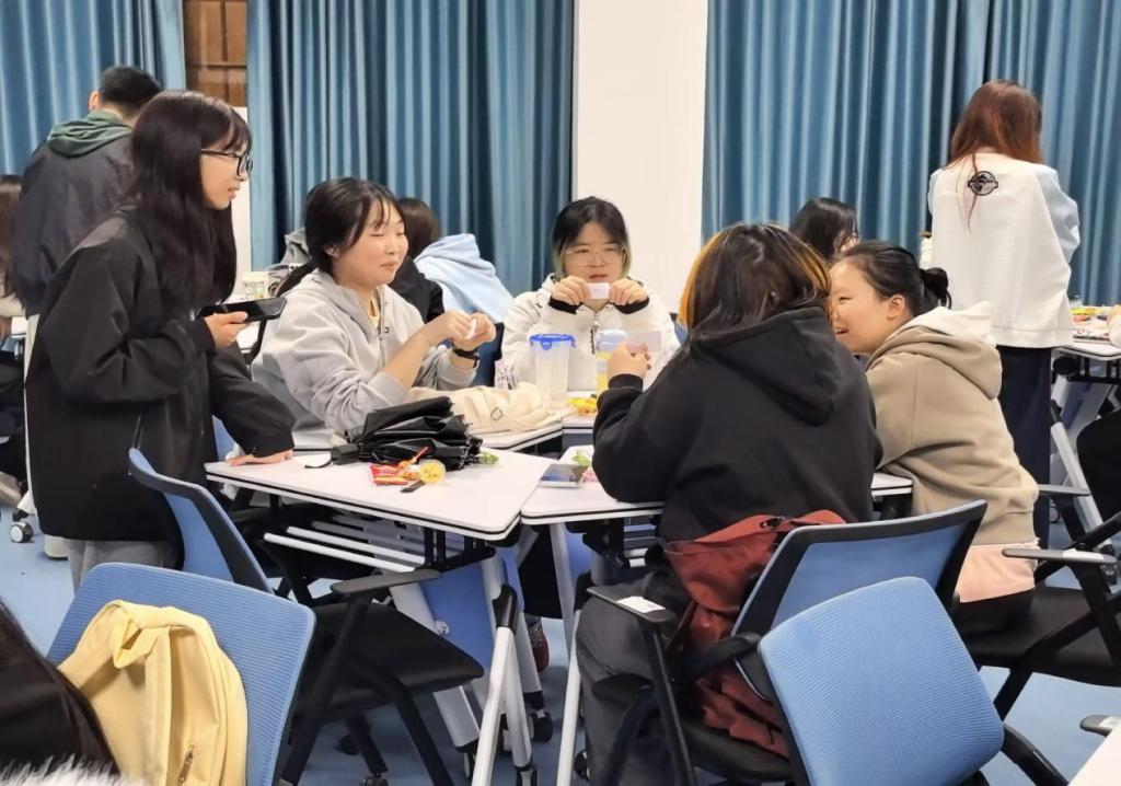 此次活动主要通过三个趣味游戏点燃同学们的参与热情。“yes or no”游戏中,各组同学根据分发的与睡眠相关词汇卡片,通过同组成员“进行是/否”问答猜测卡片上的内容,让大家在互动中强化睡眠知识记忆。“女巫的毒药睡眠版”游戏里,同学们协作标记“毒药”卡片,选到“毒药”后需根据卡片上的内容与同组同学共同完成任务。在“一句话筑梦”创作环节,同学们分组协作构建独属于自己小组的完整梦境,并进行现场分享,让同学们在轻松有趣的氛围中提高对睡眠的重视程度。