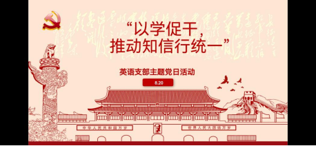 2023年8月20日,外国语学院英语党支部于线上开展“以学促干,推动知信行统一”主题党日活动。活动由卢青雯同志主持,支部全体成员参加。