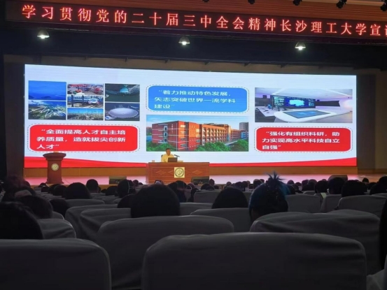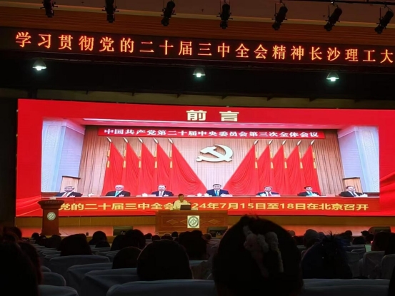 2024年9月20日上午,学习贯彻党的二十届三中全会精神威廉体育williamhill宣讲团首场报告会在金盆岭校区大礼堂举行。本次报告会由省委宣讲团成员、校党委书记付宏渊作首场宣讲报告,校党委副书记方琼主持报告会。外国语学院响应学校号召,组织学院全体教师、学生党员及骨干积极参与。