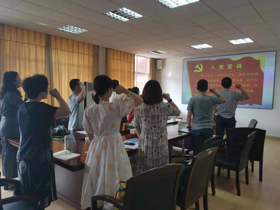 专题会分为重温入党誓词、党支部书记述职、党员学习交流与党性分析、党支部书记点评等四个环节。