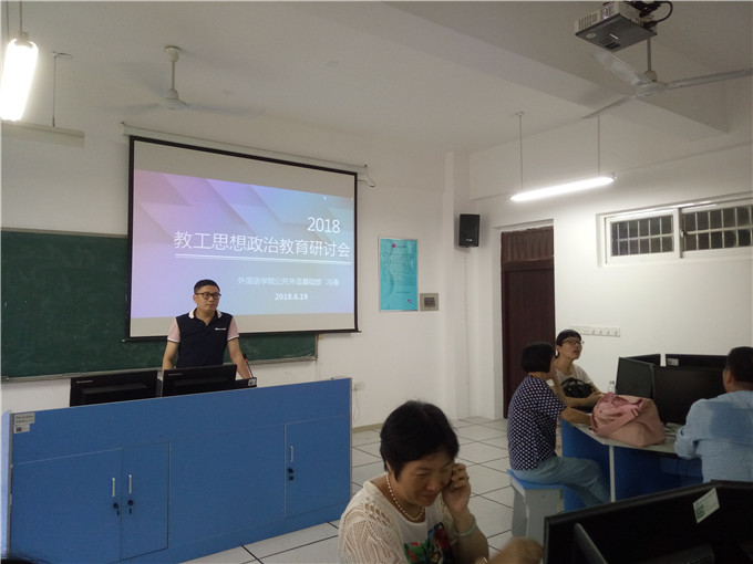 为深入学习宣传贯彻全国高校思想政治工作会议精神,落实立德树人根本任务,充分认识高校思想政治工作的重要性和紧迫性,公共外语基础部于2018年6月19日在云塘文科楼A408开展了一次主题为“加强教工思想政治教育”的教研室活动。