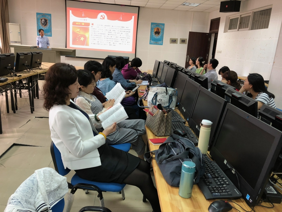 2018年6月4日下午2点,外国语学院提高部党支部在文科楼A-504开展主题党日活动。