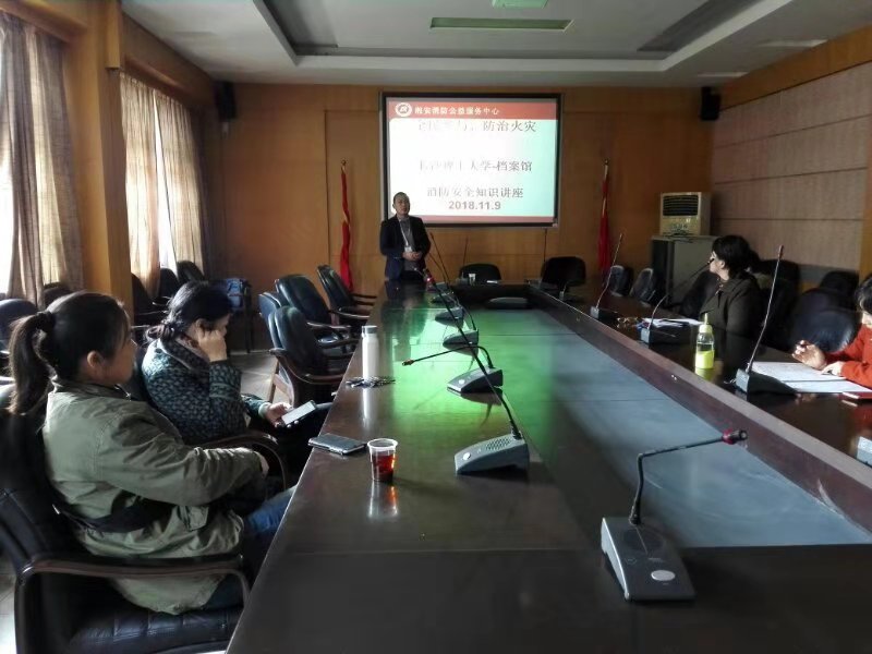 档案安全是档案工作的底线,是档案事业的根基,是有效开展档案利用的前提与基础。为进一步强化职工安全意识,提升安全防护技能, 2018119下午,档案馆邀请湘安消防培训员蒋先智在金办大楼二会议室,为全体工作人员上了一场生动的消防安全培训课。教员用鲜活的案例为大家讲授了消防安全知识,介绍了多种常见的消防器材使用方法。通过培训,大家强化了消防安全意识,进一步明确了档案安全要务。