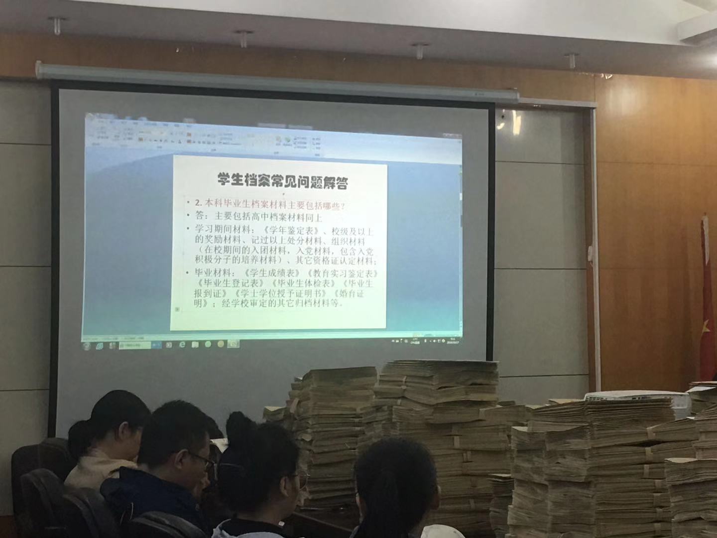 学生档案室主任尹瑛介绍了学生档案工作的重要性和法律性,强调学生档案工作要规范化、制度化,并通过系列活生生的具体案例,对学生档案怎么建档实际操作过程进行了详细讲解,使辅导员(兼职档案员)能够更快地熟悉学生档案业务,更加重视学生档案工作。