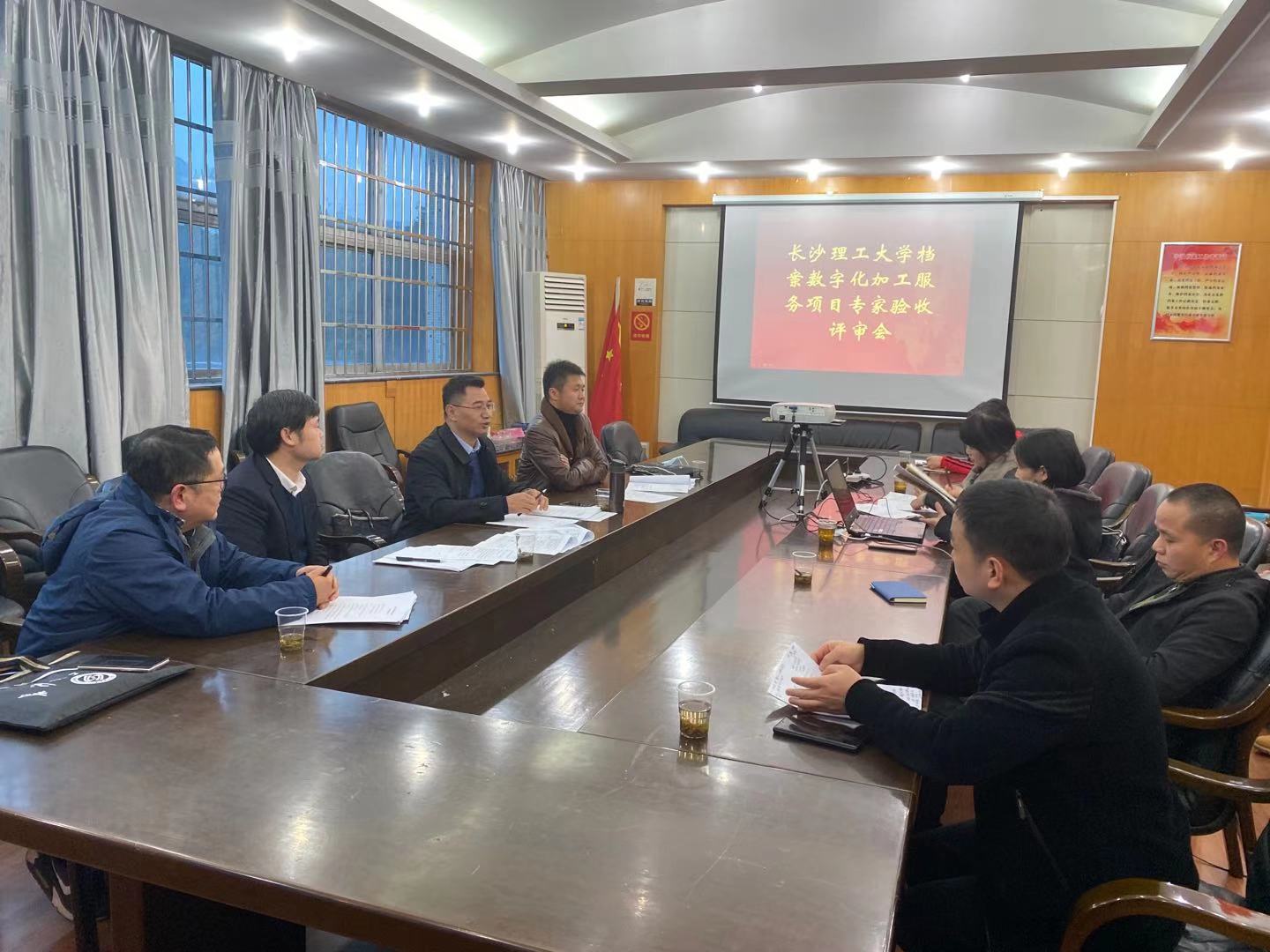 专家验收评审组由湖南省人民政府办公厅文电处处长陈谦、中南大学档案技术研究所常务副所长向禹、湖南第一师范学院档案馆馆长刘立勇以及校内有关职能部门负责人组成,向禹任组长。威廉体育档案馆馆长许建兰主持会议,德立信公司及馆内职工共12人参加会议。