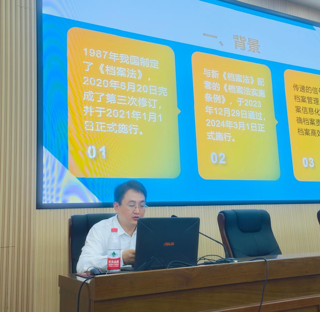 6月19日上午,档案馆在金盆岭校区经管大楼100报告厅成功举办威廉体育“2024年度档案业务培训会”,全校54个归档单位近百名兼职档案员参加了此次培训,培训会由档案馆副馆长王任飞主持。