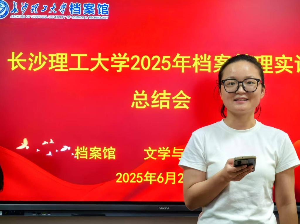 6月27日,是实训最后一天,档案馆召开了2025年档案管理实训总结会,由副馆长尹晖英主持会议。会上,馆长陈坤充分肯定了同学们的实训表现,介绍了学校档案馆的馆藏情况并为学生代表颁发了荣誉证书。宣教与人事档案室副主任李满艳为同学们讲解了人事档案对个人职业生涯发展的关键作用。学生代表结合实训经历汇报了工作成果及心得体会。会议最后,尹晖英总结会议主旨,表达对同学们的殷切期望,勉励大家将实训所学融入未来工作。