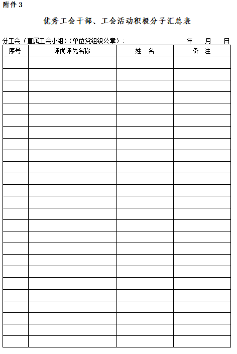 附件3:优秀工会干部、工会活动积极分子汇总表.docx