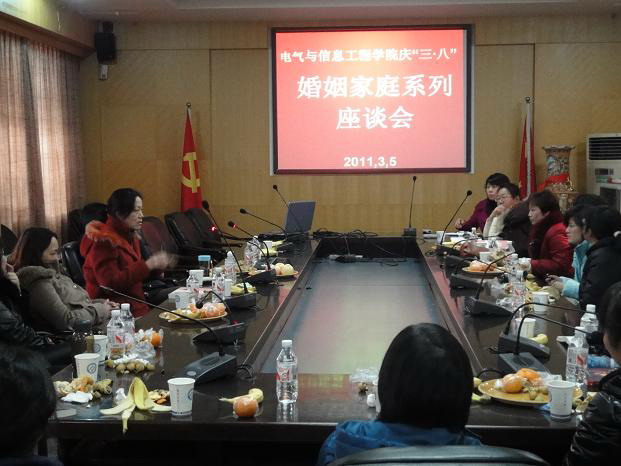 3月5日上午8:30,由电气与信息工程学院工会组织的庆“三·八”婚姻家庭系列座谈会在威廉体育williamhill金盆岭校区行政办公楼二会议室如期举行。学院党委和行政对此次活动非常重视。曾祥君院长、周任军副院长、工会主席张国强亲临会场指导并发言。曾院长充分肯定了全体女职工对学院教学、科研以及和谐学院建设方面所做出的贡献,并祝全体女职工节日快乐!