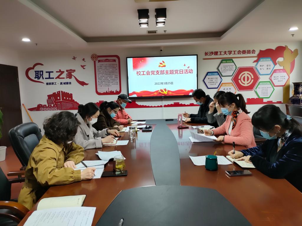提高认识,强化责任。工会党支部在3月11日、3月15日、3月25日连续三次召开新冠肺炎疫情防控工作会议,认真学习习近平总书记关于疫情防控工作的系列重要讲话精神和党中央、国务院关于疫情防控工作的有关要求,特别是3月17日中央政治局会议精神;省委、省政府和省委教育工委、省教育厅关于疫情防控工作的有关部署,特别是省教育厅《关于切实强化当前学校疫情防控工作的通知》(湘教通〔2022〕50号)文件要求;学校党委关于疫情防控工作的具体要求,特别是学校《关于从严从紧做好当前学校疫情防控工作的通知》等一系列通知文件。支部要求工会干部按照学校有关会议精神,切实把“防止疫情向学校扩散、守护师生安康、维护校园稳定”作为重大政治任务和当前最重要的工作来抓,认真落实学校疫情防控工作领导小组的各项工作部署,严防死守,共同抗击疫情,发挥工会组织作用,全力助推疫情防控,全力保障师生员工生命健康。