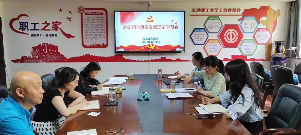 4月20日下午,校工会党支部开展“学思想、强党性、重实践、建新功”政治理论学习会。会议由支部书记郭剑主持,工会全体职工参加。