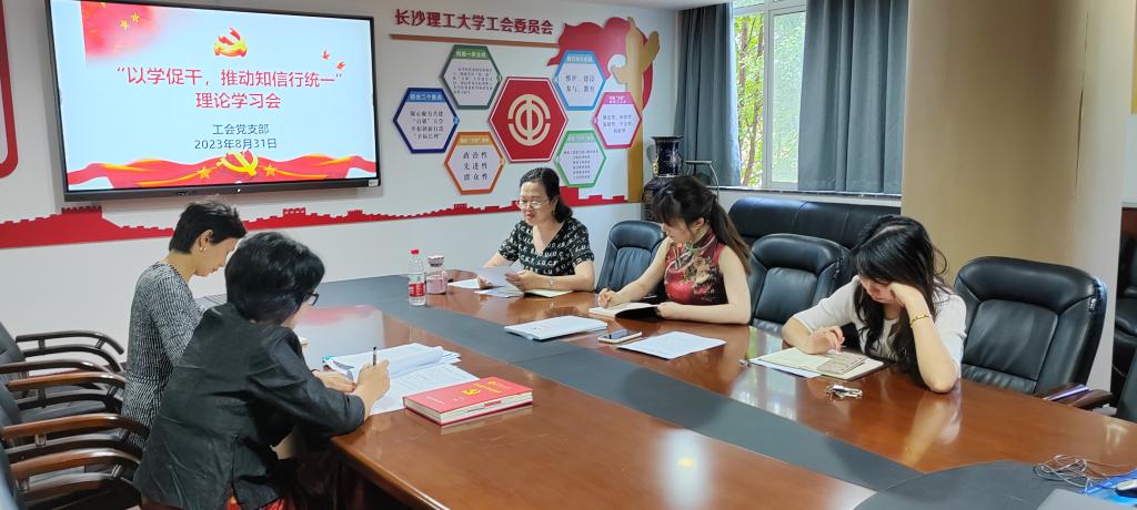 8月31日下午,校工会党支部召开“以学促干,推动知信行统一”主题教育理论学习会。会议由支部书记郭剑主持,工会全体党员参加学习。