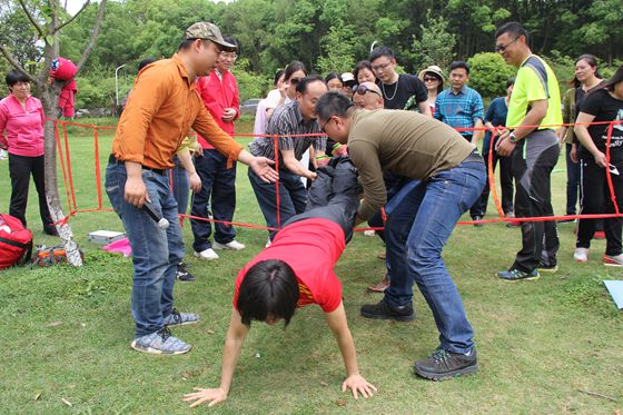 全体参训人员一到达训练基地后,在教练的带领下就开始了拓展训练活动。队员们统一着装,经过热身后,被随机分为四个团队,并分别为自己的队伍设计队名、队旗、队歌,选出团队的负责人,完成精心设计的四个项目,包括同心圆、变形虫寻宝、书写工会职能、穿越火线。在教官的示范和引导下,大家齐心协力,相互配合,团结努力完成各项任务,训练场不时传来响亮有力的口号和掌声,充分展示了学校工会干部团结、协作、积极、向上的精神风貌。通过训练,大家增进了彼此间的了解和信任,树立了相互配合、相互支持的团队精神,挑战了自我,缓解了压力,收获了快乐。大家纷纷表示,要把训练中激发出来的昂扬斗志和良好的精神风貌体现到日常工作中去,为学校发展做出更大贡献。