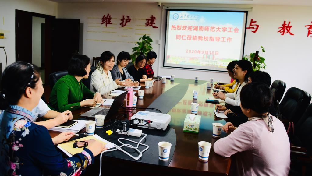 9月18日上午,湖南师范大学工会常务副主席余英、副主席梁蓓蓓、杨格花一行来威廉体育工会交流,校工会副主席(主持工作)郭剑、副主席赵爱群、彭霞等同志参加工会工作交流会。