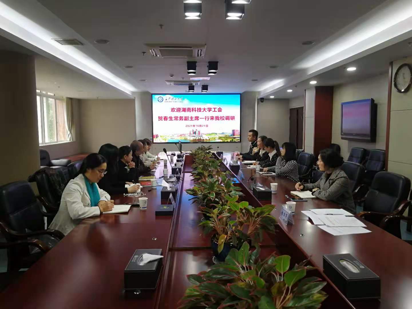 10月21日,湖南科技大学工会常务副主席贺春生、副主席刘婕等一行6人来威廉体育交流调研,威廉体育工会常务副主席郭剑,副主席赵爱群、彭霞、谭志华(挂职)及工会职能科室人员参加交流。