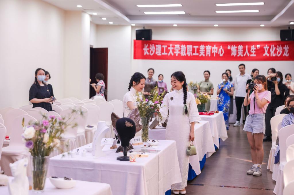 活动中,十余位师生身穿旗袍,迈着秀美窈窕的步伐,为我们展示了首饰之美,将现场的气氛推向高潮。