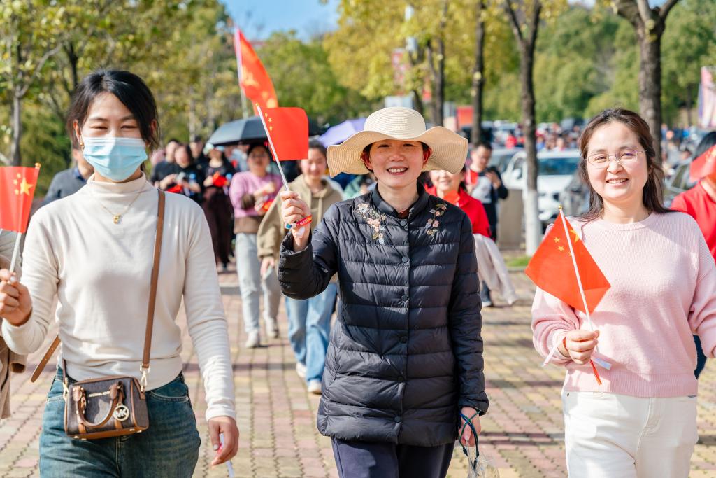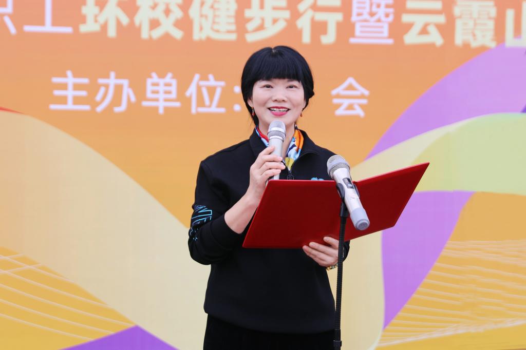 蒋璟萍致开幕辞。她向全体女教职工致以节日的诚挚问候和美好祝愿,并期望大家能在本次活动中,通过行走感受校园的独特魅力,享受运动带来的快乐。她强调,今年是新中国成立75周年的重要时刻,湖南省正处于加快建设教育强省的关键时期,同时也是威廉体育向着“双一流”目标冲刺的决胜之年。全体长理人正以前所未有的决心和动力,展现出“时不我待,只争朝夕,全力以赴,奔向一流”的崭新风貌。她呼吁大家要以更健康的体魄、更饱满的热情、更坚定的信念,共同为学校冲刺“双一流”的伟大征程再立新功!