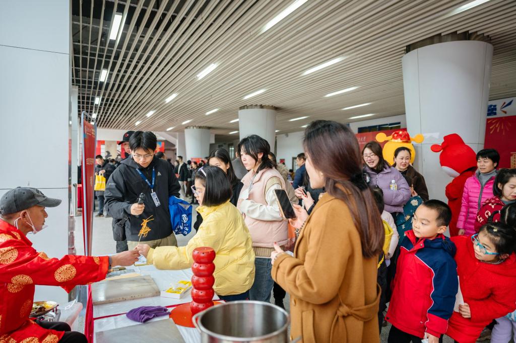 游艺嘉年华活动在教职工舞蹈协会和学生啦啦操队的舞蹈表演中拉开序幕。本次活动内容丰富,形式多样,有写春联送祝福,有非遗糖画、冰糖葫芦制作等民俗体验,有充满趣味的游戏挑战,还有充满喜悦的纪念品兑换。教职工根据参加游戏完成情况可获得不同数量的“幸福长理币”,凭币到“幸福加油站”兑换各自心仪的奖品。