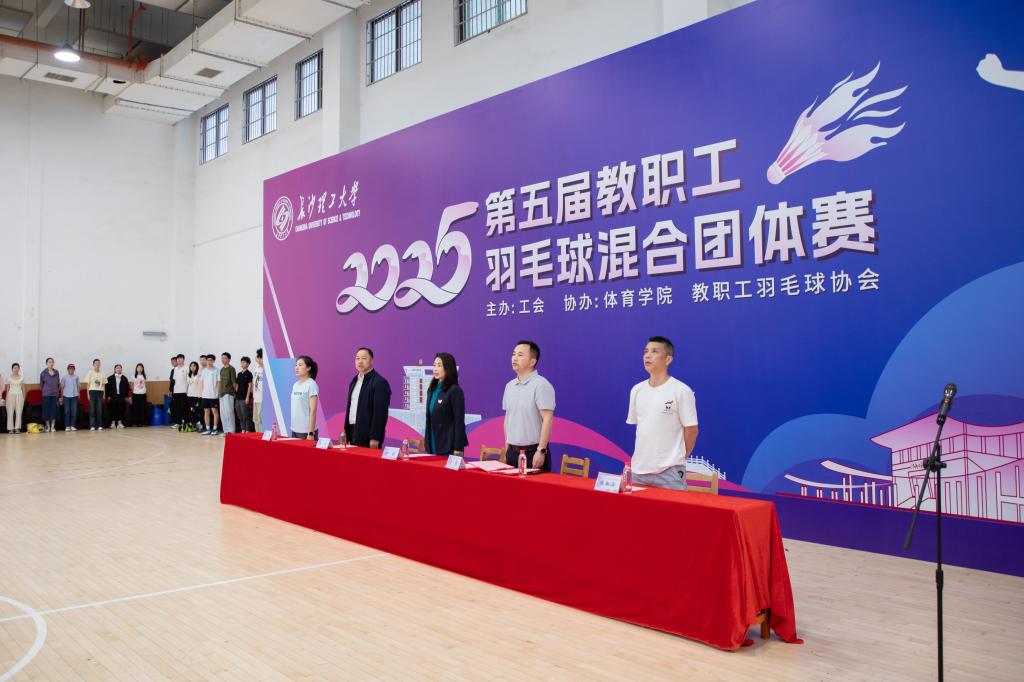 开幕式在青春洋溢的学生啦啦操表演中拉开帷幕,随后裁判员方阵与各参赛代表队依次入场,整齐列队。在庄严的奏唱国歌仪式完毕后,方琼致开幕词。她表示,高校教职工既是知识的传播者,也是健康生活的倡导者。本次比赛不仅是竞技的舞台、展现威廉体育教职工团结奋进、昂扬向上精神风貌的窗口,更是推动校园文化建设、促进教职工交流的重要载体,希望通过羽毛球这项充满魅力的运动,让教职工们在切磋技艺中增进情谊,在挥洒汗水中收获快乐!