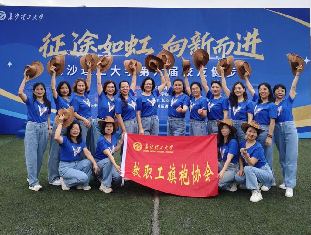上午9点半,体育场上的帽子舞蹈秀率先拉开活动序幕,由长理教职工旗袍协会呈现表演。为了契合这次健步行活动主题,展现运动活力,她们打破旗袍秀表演的常规,身着蓝色T恤衫、牛仔裤,头戴牛仔帽,伴随着音乐旋律舞动,通过新式编舞,将旗袍步伐与时尚运动相融合,展现自信与风采。这场别开生面的表演秀,既是对中华文化的传承致敬,也为活动注入新活力,引得现场掌声不断。