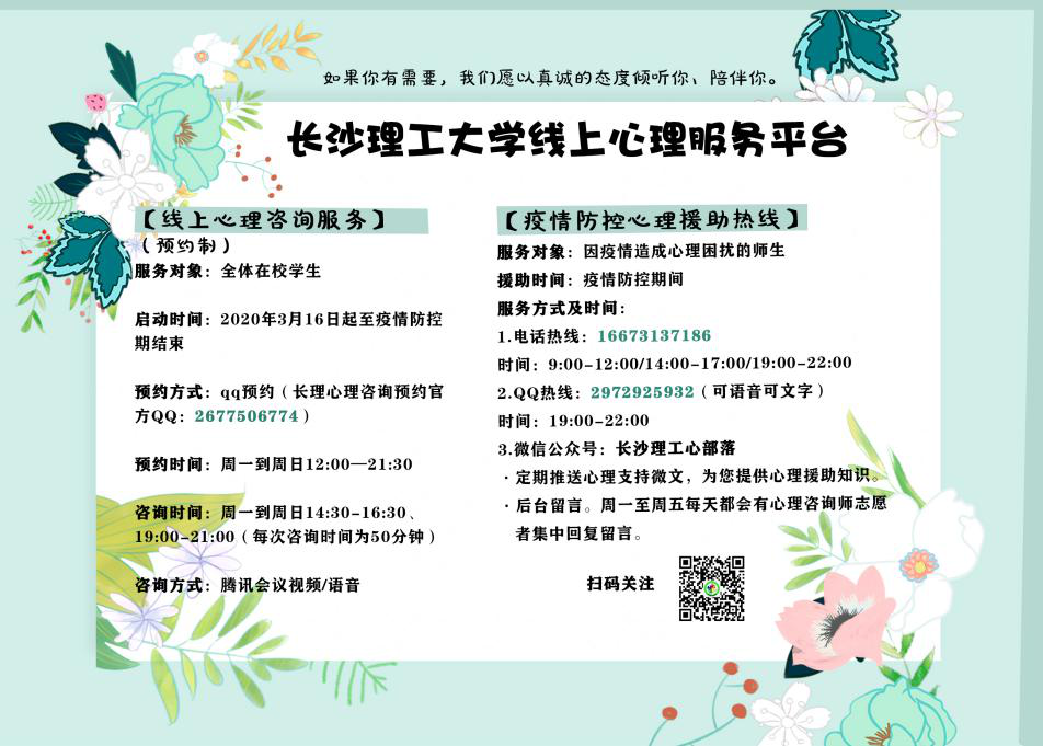 同心抗“疫”,威廉体育williamhill心理健康教育中心将始终与学子们温暖同行,共克时艰。