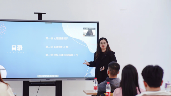此次培训由心理健康教育中心专任教师曾玮怡主讲。本次培训从心理健康常识、心理危机干预、校朋辈工作三部分内容展开,以事例和数据为依据,结合案例分析,呈现了各类心理疾病、心理危机的特征和表现形式,以提高校朋辈心理互助队伍的对常见心理问题的及时识别和处理能力,强调了校朋辈互助队伍作为“心理知识的传播者、心理信息的传递者、心理困扰的帮助者、心理活动的组织者”的“四合一”工作角色模式。