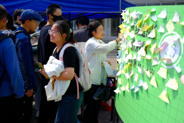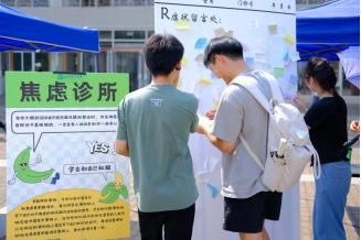 精心设计的活动展板吸引了大量同学驻足参与,活动现场设置了多个富有创意的互动环节: “焦虑之塔”,帮助同学们简单判断自己当前的焦虑状态;“焦虑诊所”鼓励同学们回顾并分享经历的焦虑事件,互相提供应对建议;“抛开‘蕉绿’”通过扔香蕉的游戏形式,帮助同学们释放情绪;“心理大富翁”则通过趣味游戏的方式,让同学们在轻松愉快的氛围中学习心理健康知识。