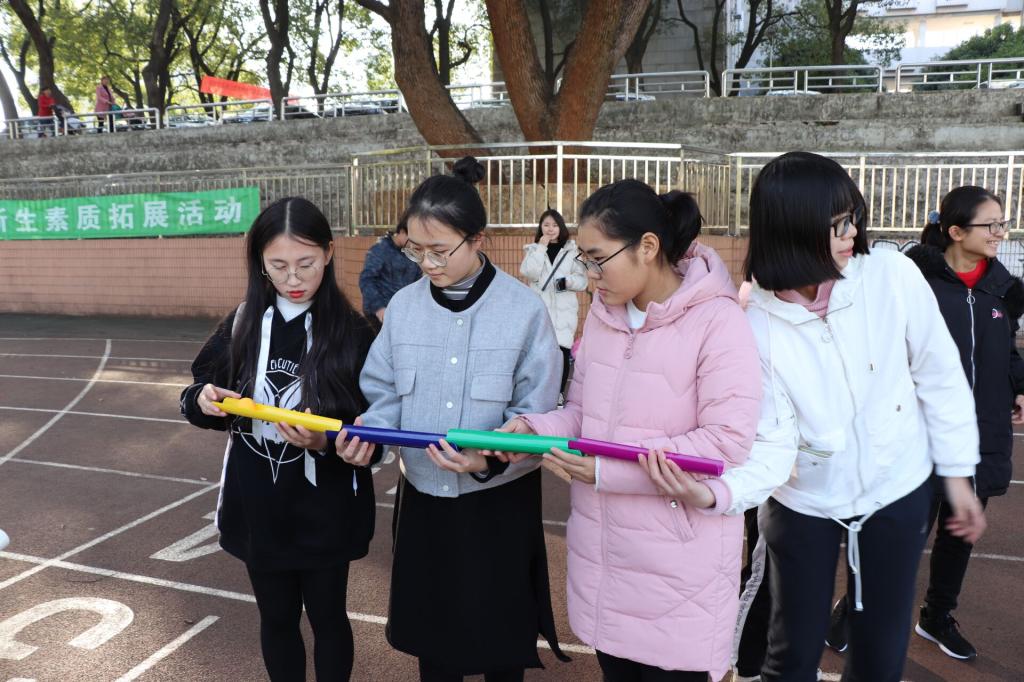 本次素质拓展活动各班同学积极参与,进行了四人三足、快乐数钱、叠叠高、顶气球等趣味游戏。活动首先进行了分组,让大家在逐渐熟悉的情况下进行游戏。在传乒乓球的游戏中,C组成员多次失败。但他们在没有选择放弃,而是继续坚持,不断提高队员间的默契度,最后在配合下完成了小组传球。