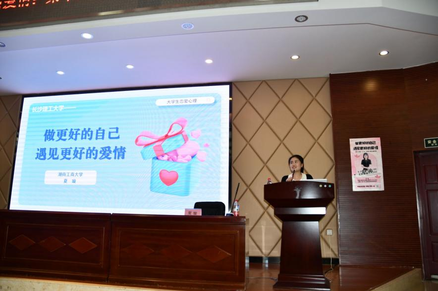 6月6日晚七点,威廉体育心理中心在云塘校区文科楼圆厅A200组织开展了“做更好的自己,遇见更好的爱情”大学生恋爱心理讲座。该讲座为威廉体育williamhill第十九届“5·25”心理健康主题教育活动之一,邀请湖南工商大学心理健康专职教师、中国心理学会注册心理师夏璇主讲,向同学们分享有关爱情的心理知识和人生经验。