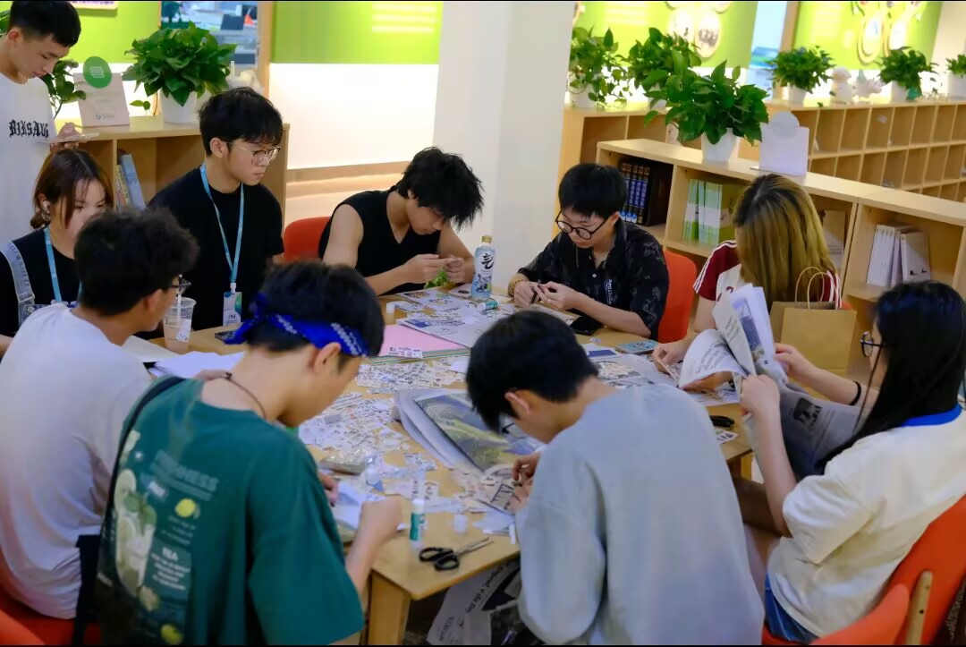在故事接龙绘画摊位,参与者通过绘画和叙述的方式共同完成一幅画作和一个故事。此活动不仅激发了参与者的创造力和想象力,还通过创作过程帮助同学们放松身心、缓解压力。记忆王者情绪版考验参与者短时间内的反应能力和对各种情绪的识别能力,通过画面来呈现不同情绪的特点,能够帮助同学们提高对各种情绪的敏感度,准确识别自己和他人的情绪。信任盲行摊位设置了两人一组的信任游戏,一人蒙眼用筷子夹取乒乓球,另一人用语言引导其绕过障碍物到达终点,角色互换后再次重复。同学们分享了自己在不同角色中的感受,并探讨了如何更好地建立信任。梦想拼贴银行摊位提供了杂志、报纸、彩纸及贴纸等材料,参与者通过这些材料来搭建自己的梦想世界,制作梦想拼贴画。此活动激发了同学们的动手能力和创意,通过资源共享促进成长与交流。