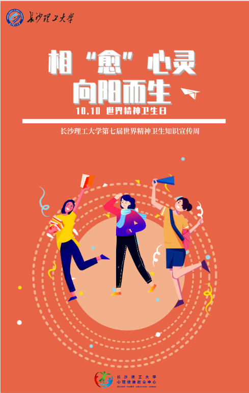 10月10日是第32个世界精神卫生日。为加强全校师生对精神卫生知识的关注和认识,积极预防和控制精神卫生问题,构建和谐平安校园,学工部心理中心在全校组织开展了第七届“双十”精神卫生知识宣传活动,帮助师生了解精神卫生的内涵,掌握精神卫生知识,提高自我精神保健意识,学习预防精神卫生问题的技能,学会及时寻求心理援助。