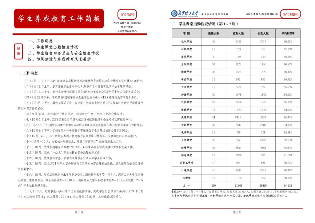 学生养成教育工作简报第12期(2023年9、10月)
