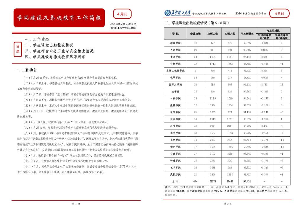学风建设及养成教育工作简报第16期(2024年4月)