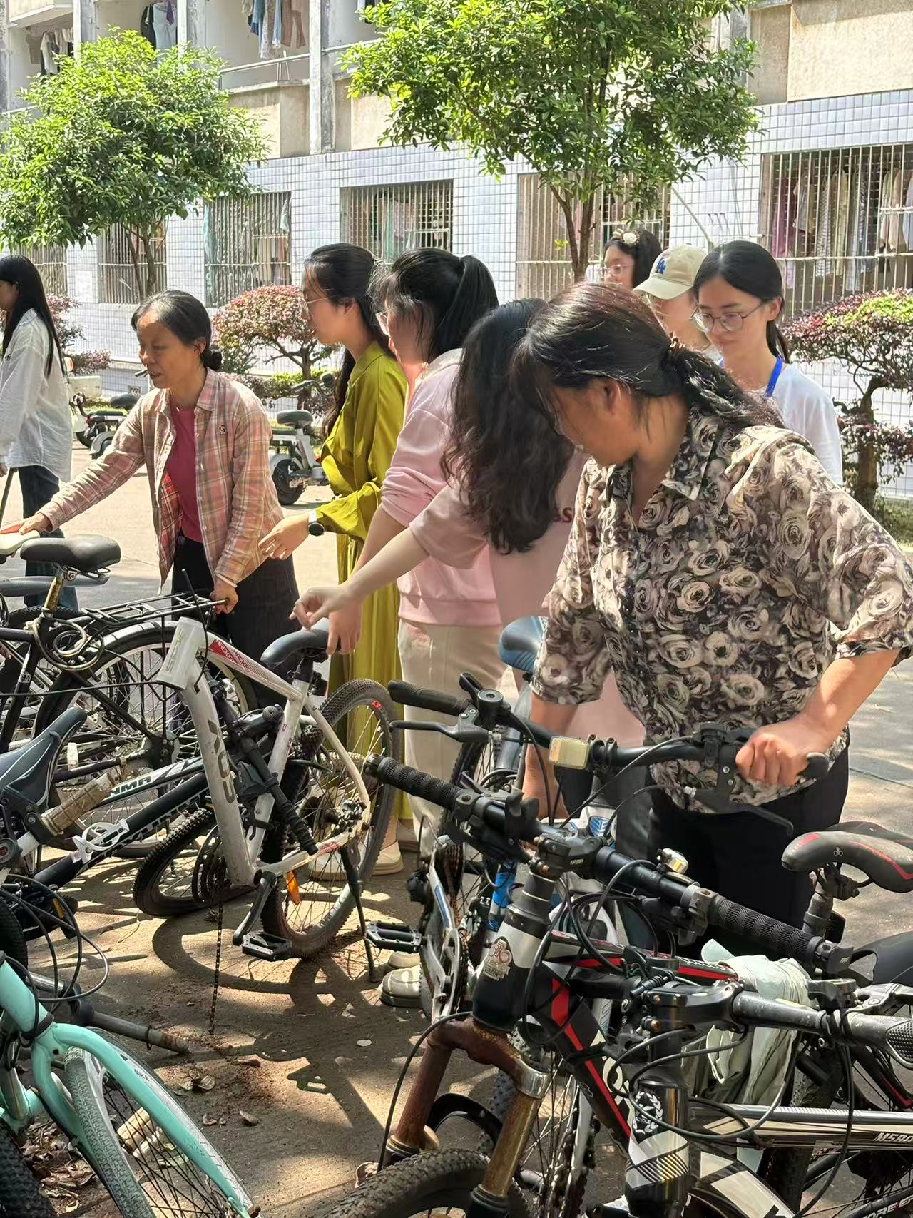 在金盆岭校区西苑学生宿舍区域,同学们围绕环境提升三大任务展开行动。一是开展卫生大扫除,同学们手持扫帚、铲子等工具,对楼栋周边道路、绿化带进行地毯式清理,将散落的烟头、纸屑和落叶集中清运至垃圾站。二是规范自行车停放,针对道路两旁、消防通道等区域的违规停放车辆,大家通力合作将其搬运至指定停放区,并按照“车头朝向一致、间距均匀”的标准整齐排列。三是进行除草作业,面对宿舍前坪蔓延的杂草,大家用双手和劳动工具将杂草拔除,使原本杂乱的空地恢复整洁。350余名学生高效率完成了校园美化实践活动,为学校师生营造了更加美丽、整洁舒适的校园环境,用实际行动诠释了“劳动最光荣”。