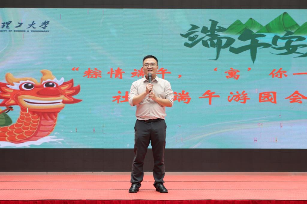 5月29日下午,正值端午节来临之际,“粽情端午,‘寓’你同行”社区端午游园会在云塘校区汀香园一楼、金盆岭校区西苑食堂一楼大厅同步举行。此次活动吸引了全校200余名师生热情参与,学工部部长王学成和相关负责人出席。