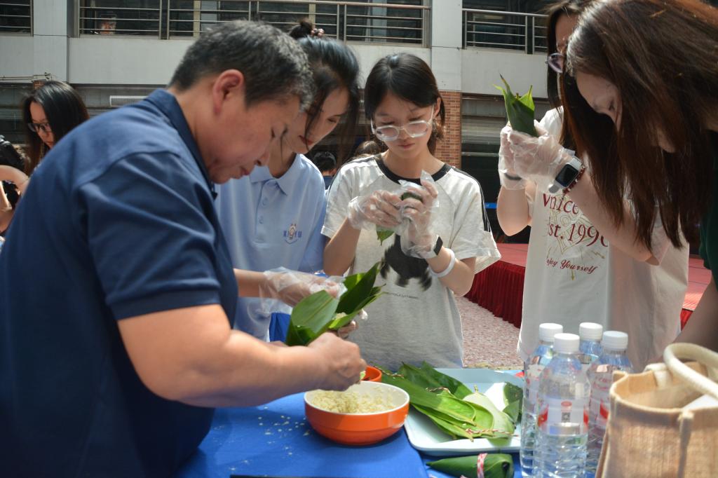 活动现场,师生们同台献艺,赢得现场阵阵掌声。师生自由组队,以小组协作的方式展开比拼趣味包粽子比赛。卷粽叶、填馅料、捆粽绳……现场欢声笑语不断,洋溢着轻松热烈的节日氛围。评委依据“完成数量、操作速度、粽子质量、成品美观度”四大标准,评选出一、二、三等奖及优胜奖,并为获胜队伍送上了丰厚奖品。端午知识问答环节人气高涨,吸引众多师生踊跃答题。