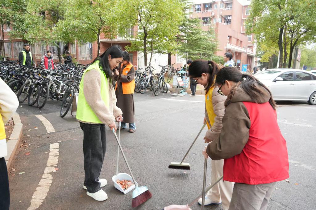 此次活动聚焦学生公寓楼栋及其周边道路区域开展全面清扫。志愿者们分工协作,持各类劳动工具,细致清理劳动区域的落叶、烟头和杂物等垃圾,不放过任何一处细节盲区。经过近两小时的集中整治,公寓片区环境焕然一新:主干道干净整洁、绿化带清爽通透、楼栋周边规整有序,志愿者们忙碌的身影勾勒出校园里最亮眼的青春风景线。看着亲手打造的整洁环境,他们纷纷表示深刻领悟了“劳动创造美好”的意义,未来将以更加积极的姿态参与校园建设,践行雷锋精神。
