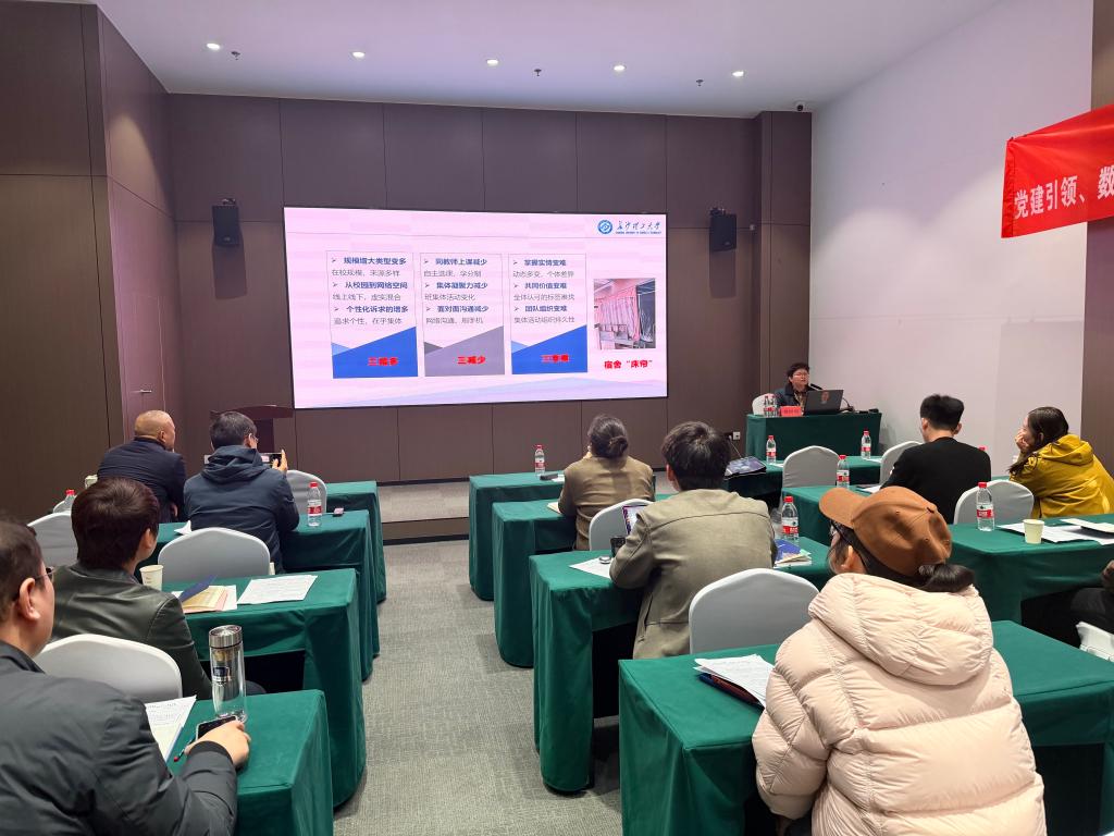 3月20日下午,调研团队前往武汉理工大学,围绕“一站式”学生社区建设、书院制运行、数智化服务平台、公寓精细化管理等重点工作开展座谈交流。武汉理工大学相关负责人详细介绍了学校“一站式”学生社区建设整体情况、组织架构、运行机制及特色成效,重点分享了数智“一站式”学生社区服务平台建设经验。双方就社区党建融合、辅导员驻楼、学生自主管理、服务集成优化、文化育人阵地建设等问题深入交流、互学互鉴。座谈结束后,调研团队实地参观武汉理工大学厚德书院,现场学习功能空间布局、日常管理运行、文化氛围营造等方面的先进做法。