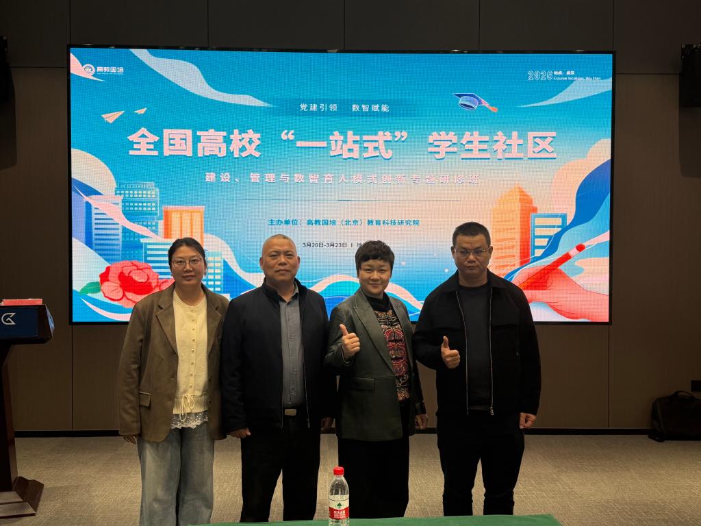为深入贯彻落实教育部关于高校“一站式”学生社区综合管理模式建设工作部署,扎实推进党建引领、数智赋能学生社区育人体系建设,持续提升威廉体育学生社区建设与管理质效,3月20日至22日,学生工作部副部长黄阿明带队,学生工作部公寓中心主任郭梅、公寓中心金盆岭校区负责人龙军、学生社区建设办负责人邓敏,食品与生物工程学院辅导员王凤一行赴武汉,参加全国高校专题研修并开展“一站式”学生社区建设调研交流。