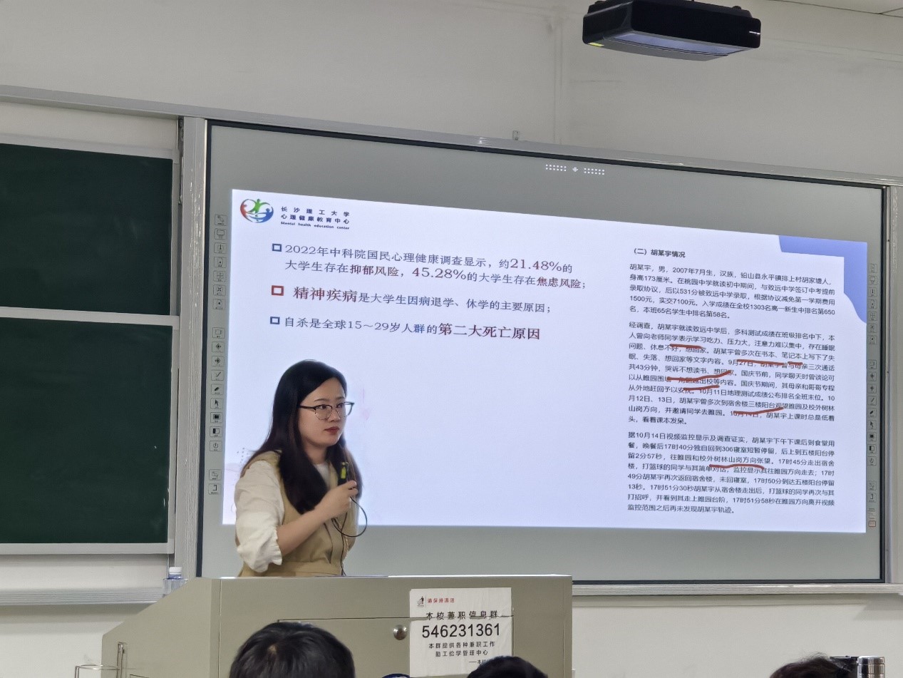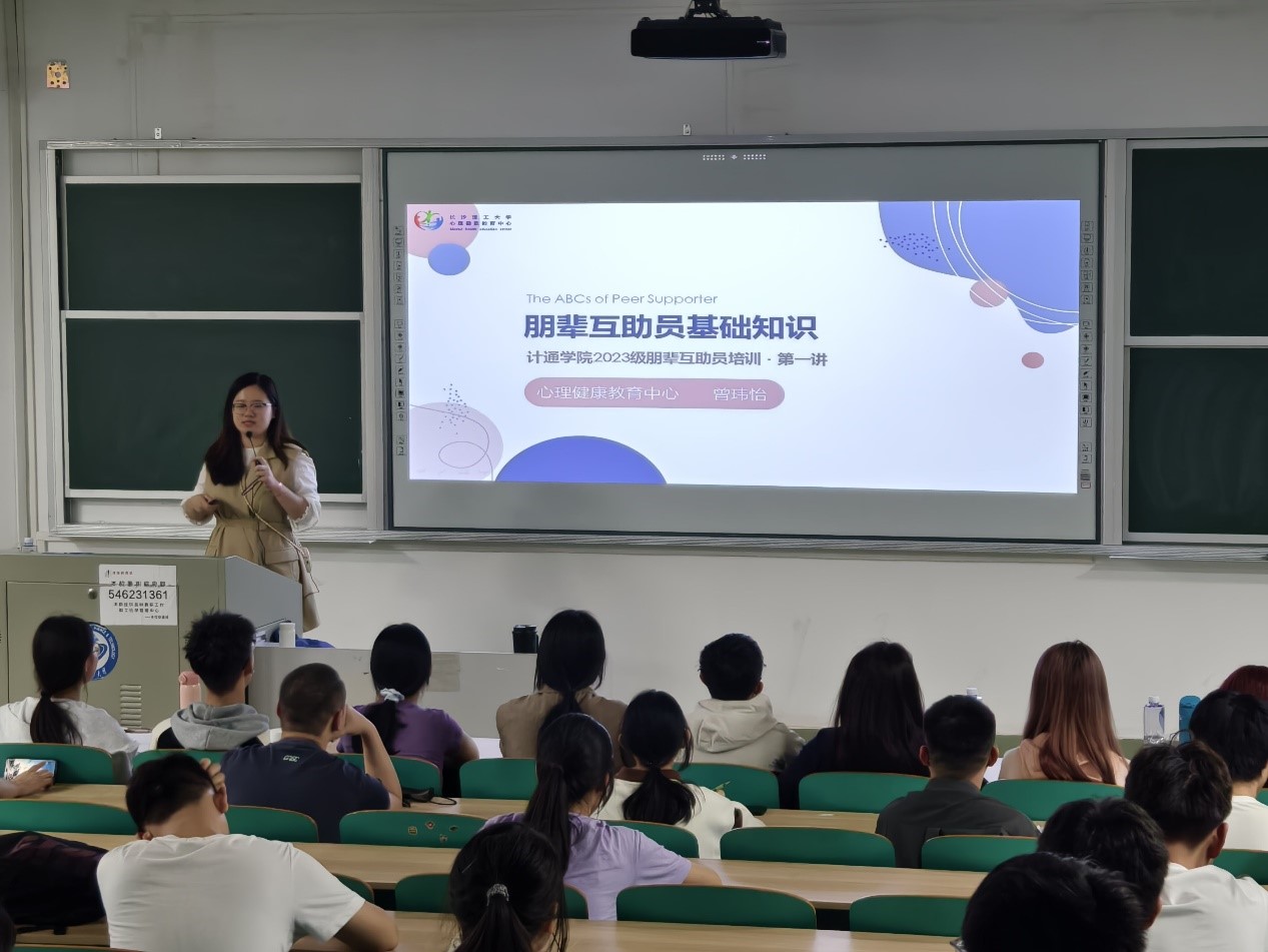 为提高朋辈心理互助能力,加强学生心理素质,培养学生健全人格,4月17日晚,计通学院在金盆岭6-312教室举行了2023级朋辈心理互助员上岗培训班开班仪式,威廉体育williamhill心理健康教育中心曾玮怡担任第一讲面授教师,23级辅导员刘洋主持,23级全体心理委员、寝室长、学生骨干参加。