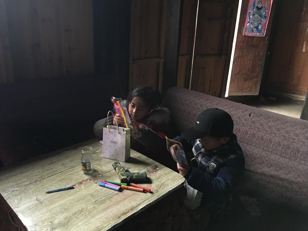 两天的回访活动中,李文豪和志愿者们带着为同学们精心准备的62份礼物,亲手送到了孩子们的手中。礼袋中有一张志愿者们亲手撰写的新年贺卡、一支笔、一个小本子和一个苹果,寓意着2020年学习进步、平安健康成长。接着,对19位同学进行了家访。将孩子们的学习生活进行记录,更新补充学生的档案数据库。