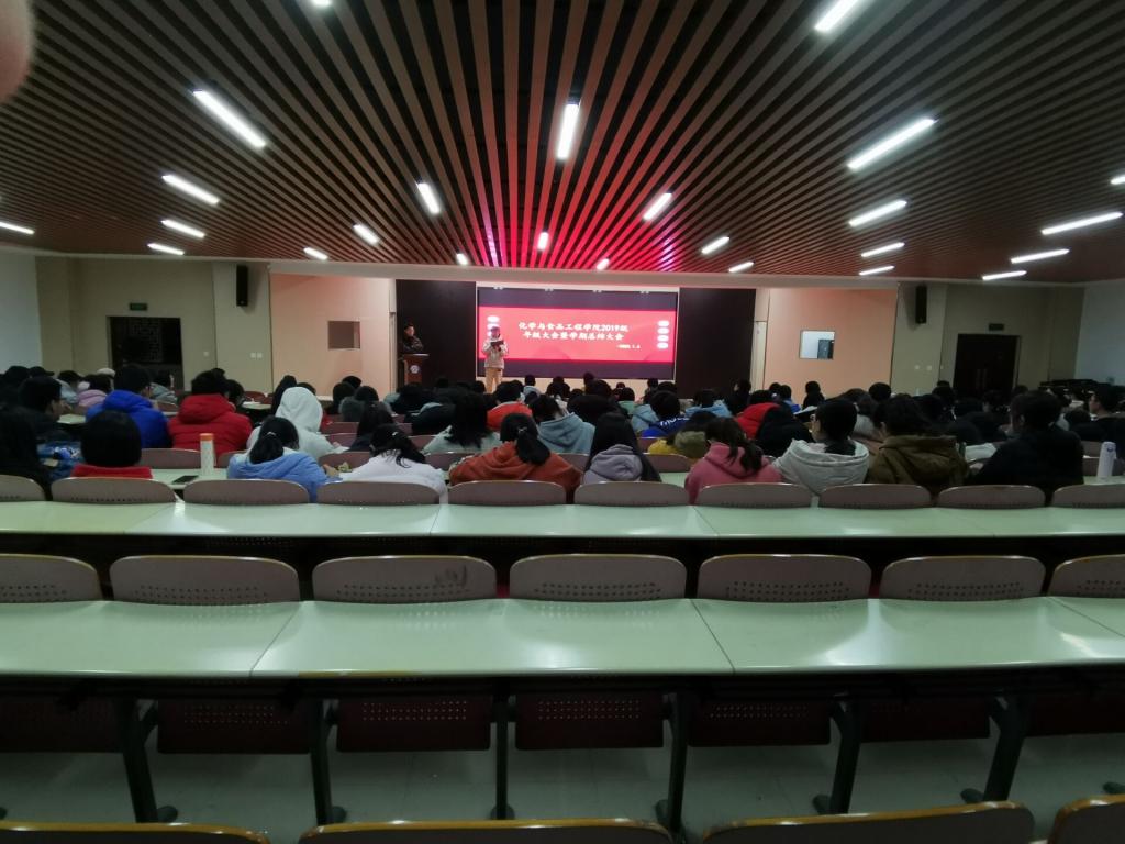1月6日晚,化学与食品工程学院于工三A201召开2019级年级大会暨学期总结会,会议由年级辅导员王彪老师主持,2019级全体学生参与会议。本次会议主要包括学期总结和寒假离校安全教育两项内容。
