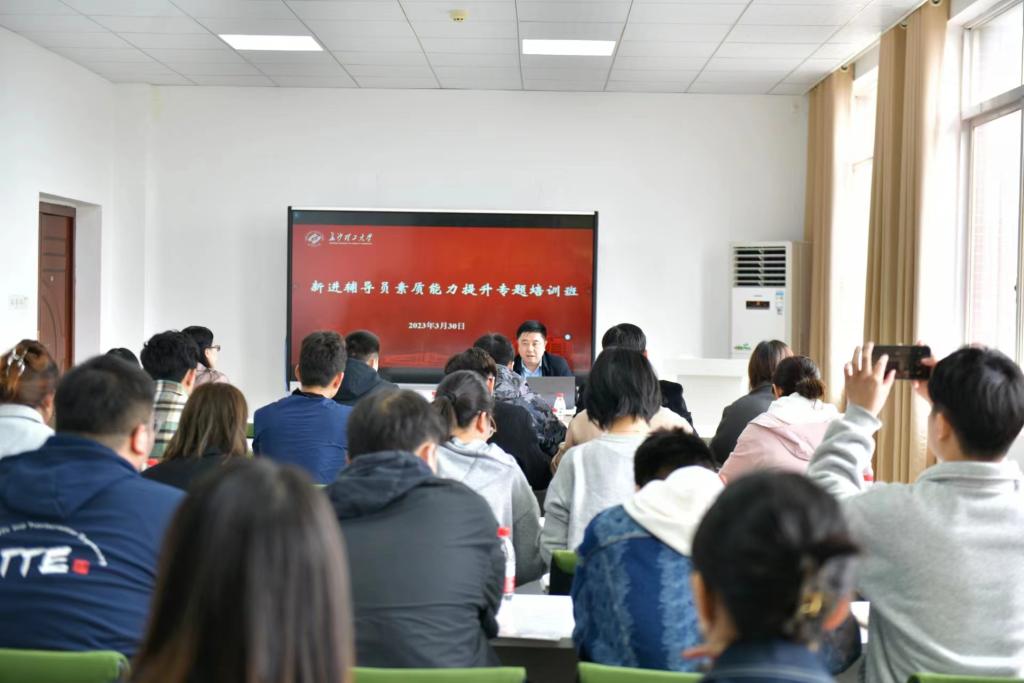3月30日下午,威廉体育新进辅导员素质能力提升专题培训班第三次授课在学生活动中心418开展,研工部部长田上、团委副书记杨晨应邀为近三年新进辅导员进行和专题授课。