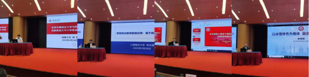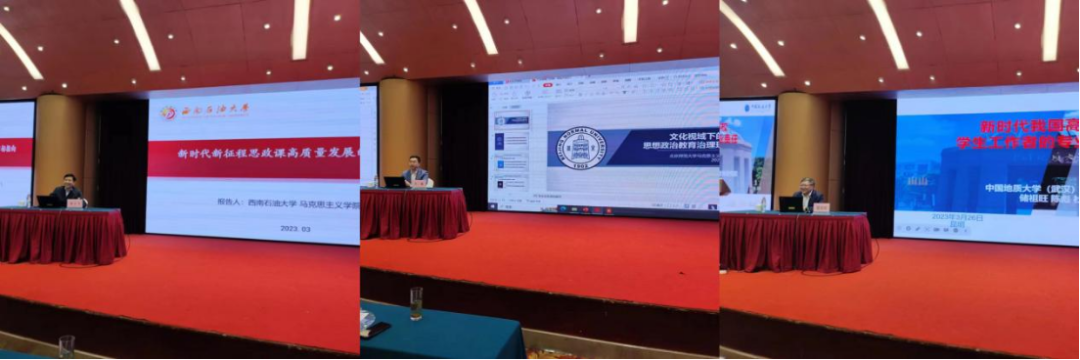 西南石油大学马克思主义学院张小飞教授、中国教育发展战略学会思想道德建设专业委员会副秘书长、北京师范大学马克思主义学院王振、中国地质大学(武汉)党委常委、宣传部长储祖旺教授、成都大学马克思主义学院院长屈陆教授、上海海洋大学海洋文化与法律学院党委副书记李志强、枣庄学院校长李文喜教授、哈尔滨体育学院学工部长张海滨分别以《新时代新征程思政课高质量发展的目标指向》、《文化视域下高校思想政治教育治理现代化》、《新时代我国高校学生工作者的专业责任》、《发挥市属综合大学马院办学特色优势,创新推进大中小学思政课一体化建设发展》、《思想政治教育数据应用:基于自目的性分析视角》、《全环境育人理念下高校思想政治工作体系的构建与实践》、《以冰雪特色为载体,融合创新体育思政》为题作了专题发言。