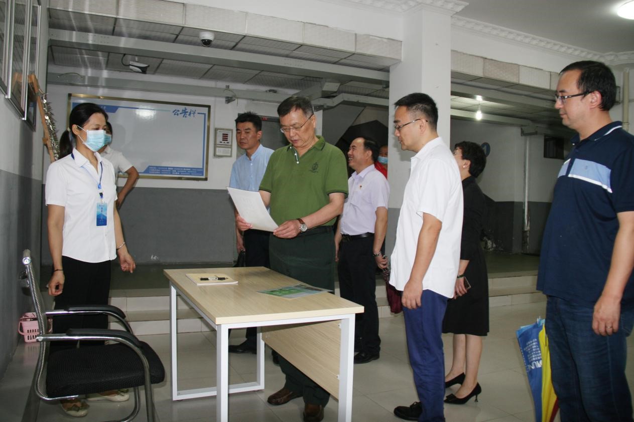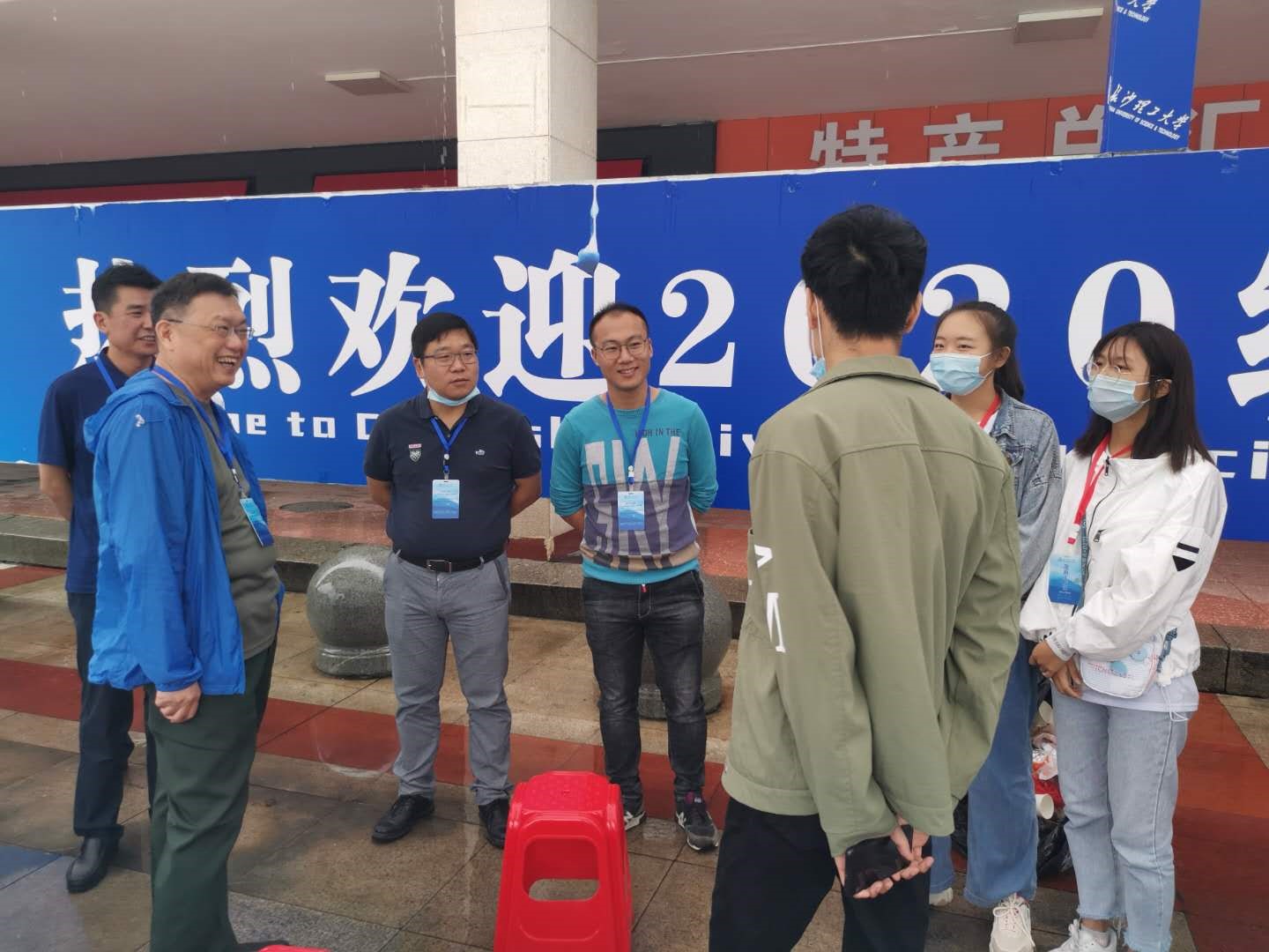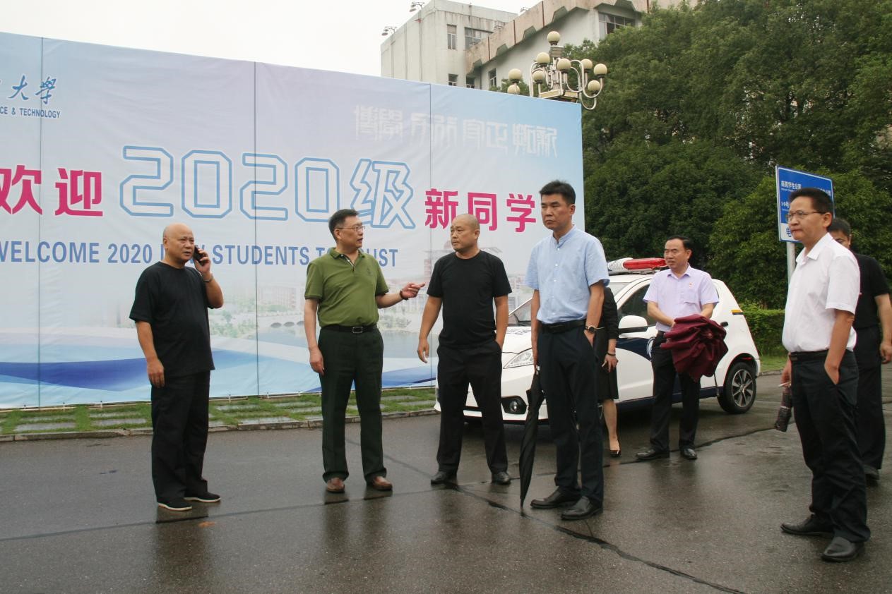 9月16日上午,副校长谈传生在学校党政办、宣传部、学工部、国资处、保卫处、后勤中心等部门负责人陪同下,在金盆岭校区检查2020级新生开学准备工作。