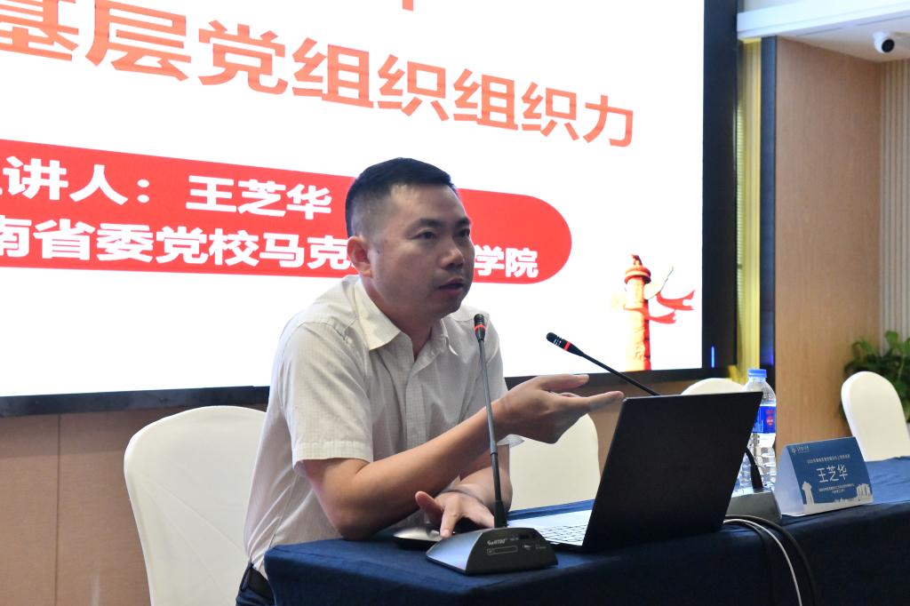 中共湖南省委党校马克思主义学院教授王芝华以《不断提升新时代高校基层党组织组织力》为题,围绕基层党组织组织力的重要作用、面临问题等进行分析,提出了提升策略和路径。
