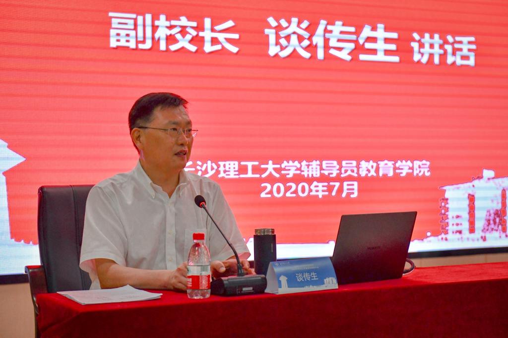 副校长谈传生在总结讲话中对近年来学生工作取得的成绩进行了肯定,并指出推动学生工作内涵发展,学工干部一是要力戒形式主义,做到信念坚定、保持定力、表里如一;二是要创新大学生思想政治教育的理念和方法,要对标现代化强国目标和全面建成百强大学,准确把握时代脉搏、青年脉搏、发展脉搏;三是要落实立德树人根本任务,践行三全育人,致力于培养德智体美劳全面发展的中国特色社会主义建设者和接班人,要解决学生的信念问题,深刻理解立德树人和三全育人的内涵,要把握全员、全程、全方位的关键;要构建科学合理的机制体制,用好主渠道、主力军。
