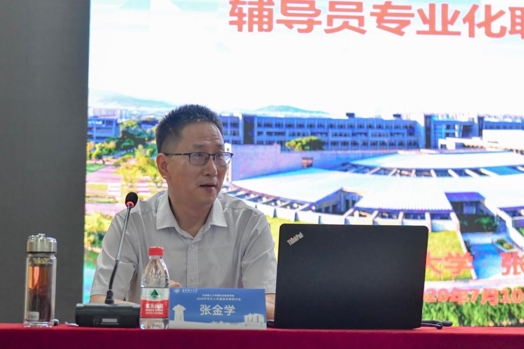 为期两天的研讨会中,7月10日上午,“最美辅导员”、中南大学张金学应邀做了“辅导员专业化职业化发展”主题报告,他围绕辅导员制度的发展历程、辅导员双线晋升制度设计、新时代思想政治教育主抓方向、辅导员年度人物特色简析四个方面进行深刻阐述。湖南省委党校科社教研部副主任王蔚教授以“如何提升高效执行力”为主题,结合实际案例深入浅出地解析了为什么要有执行力、什么是执行力、当前组织执行力存在的问题以及作为辅导员如何提高执行力。