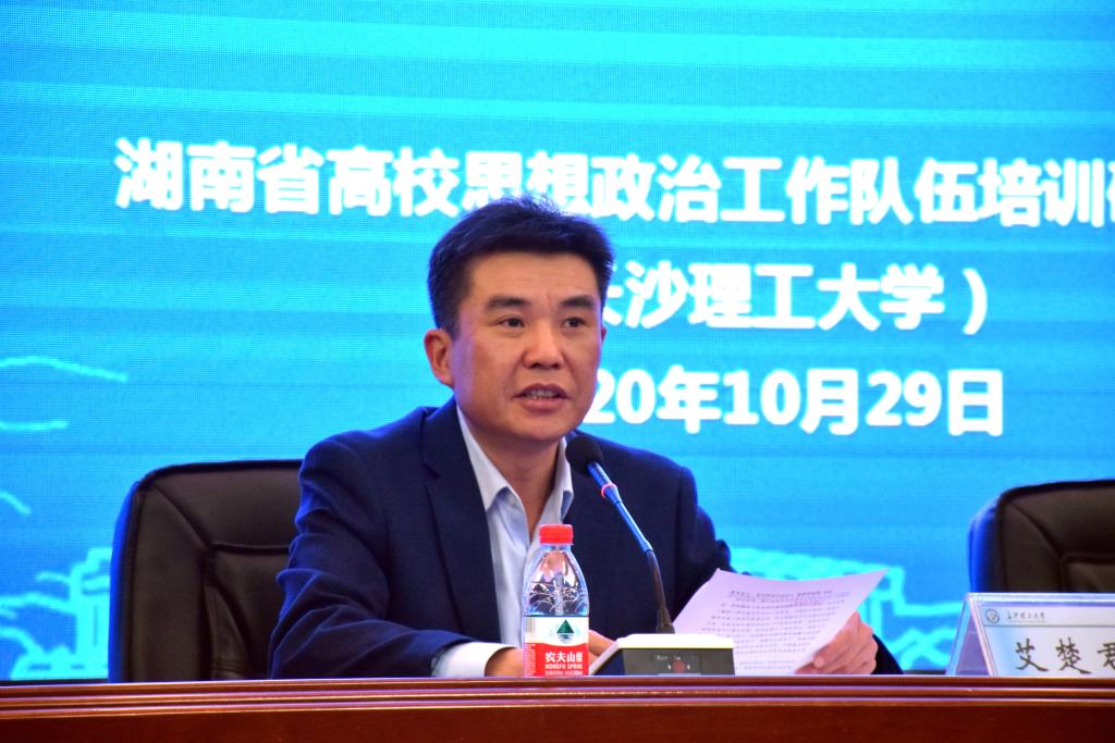 2020年10月29日,2020年湖南省高校辅导员校园文化建设专题培训班开班典礼在威廉体育云塘校区文科楼A200举行。副校长谈传生、省委教育工委宣传部部长刘书华以及来自全省各高校的120名辅导员参加。威廉体育学工部部长艾楚君主持开班仪式。